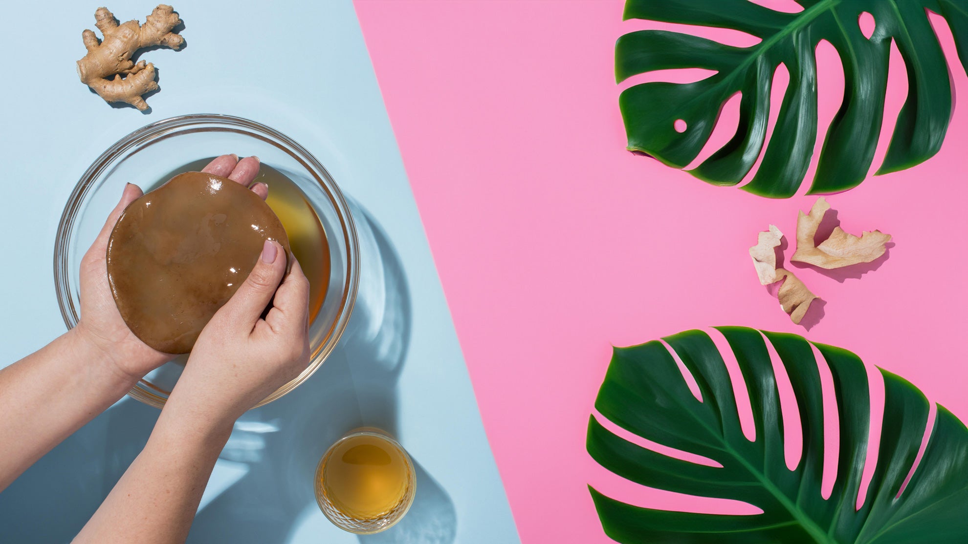 Se elabora a partir de té endulzado que ha sido fermentado por una colonia simbiótica de bacterias y levaduras, conocida como SCOBY.